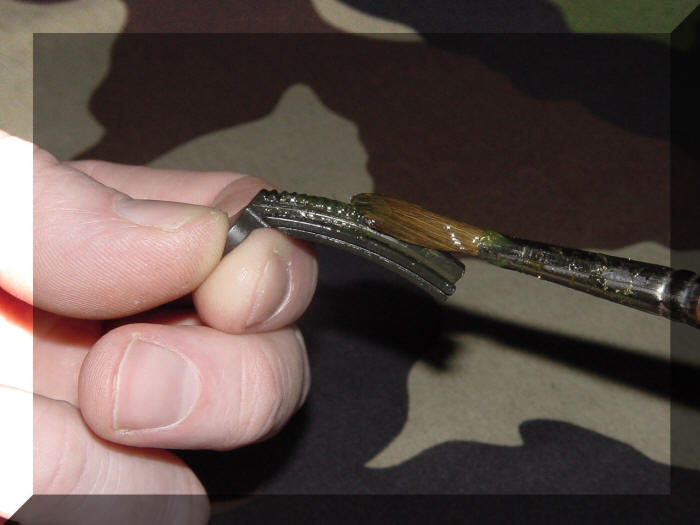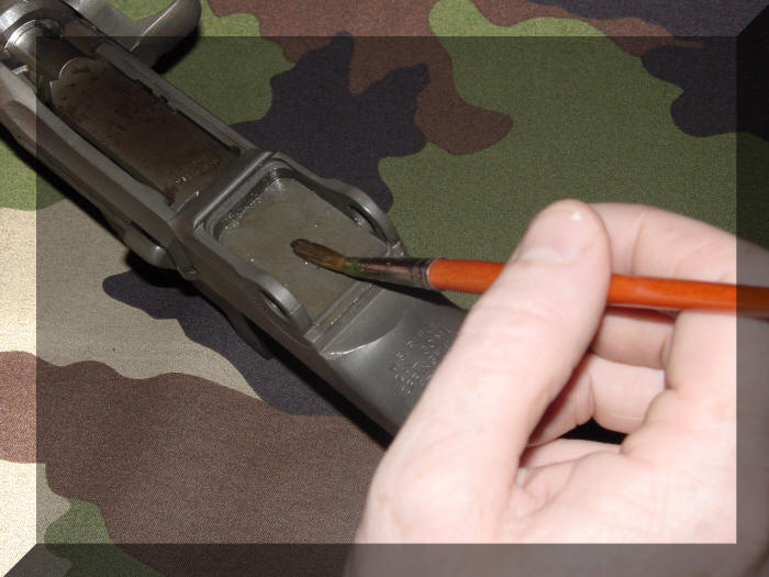 Het eerste wat we gaan doen voordat we het vizier ( Rear Sight ) gaan opbouwen is het insmeren van het afsluiterhuis ( Receiver ) met vet op de plaats waar het vizier ( Rear Sight ) moet worden geplaatst.