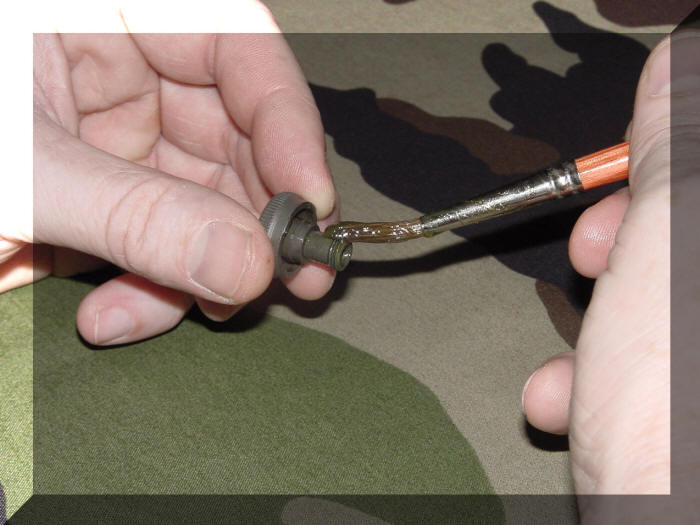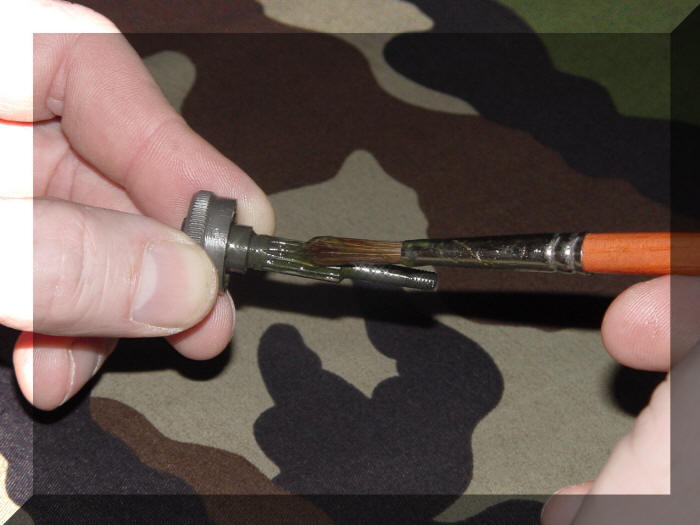 Het laatste onderdeel dat we moeten monteren van de viziergroep is de wind correctieknop ( Windage Knob ) maar voordat we deze gaan monteren smeren we eerst de schroefdraad in met vet.